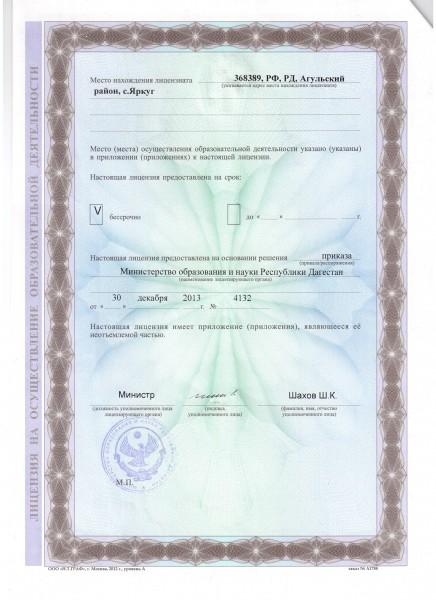 | Адрес местонахождения образовательной организации* | 368389,с.РД,Агульский район,с.Яркуг |
