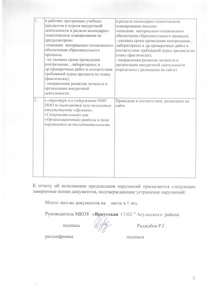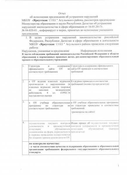 Предписания органов, осуществляющих государственный контроль (надзор) в сфере образования, отчеты об исполнении таких предписаний (при наличии)